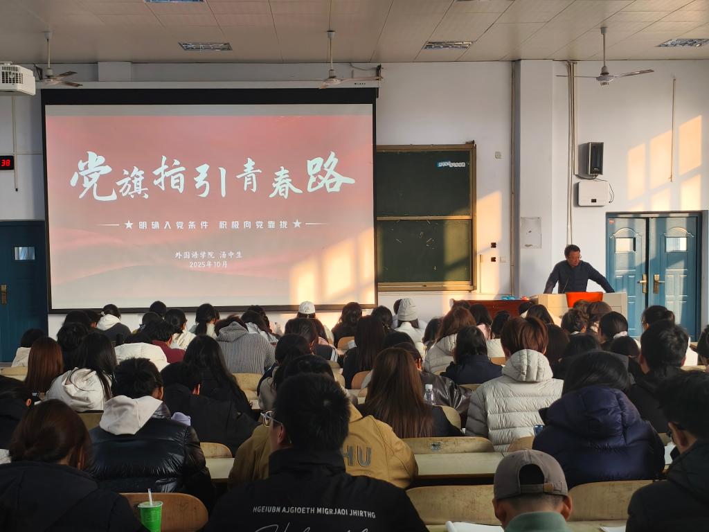 10月27日,学院党委书记汤中生以“党旗指引青春路——明确入党条件,积极向党靠拢”为题为入党积极分子讲授专题党课。
