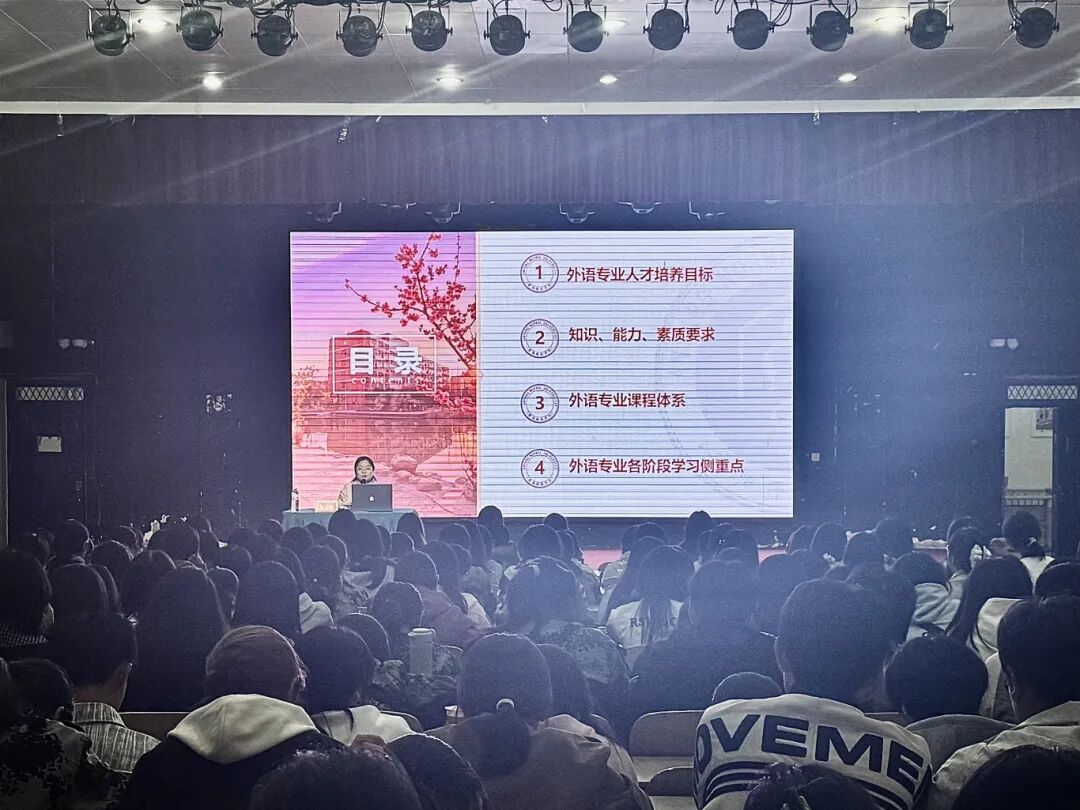 为引导新生树立专业自信,明晰学习路径与职业发展方向,9月22日晚,外国语学院副院长徐志敏于和展阶梯101教室,以“大学本科外语专业学习路径”为题,为2025级全体新生开展专业思想教育。