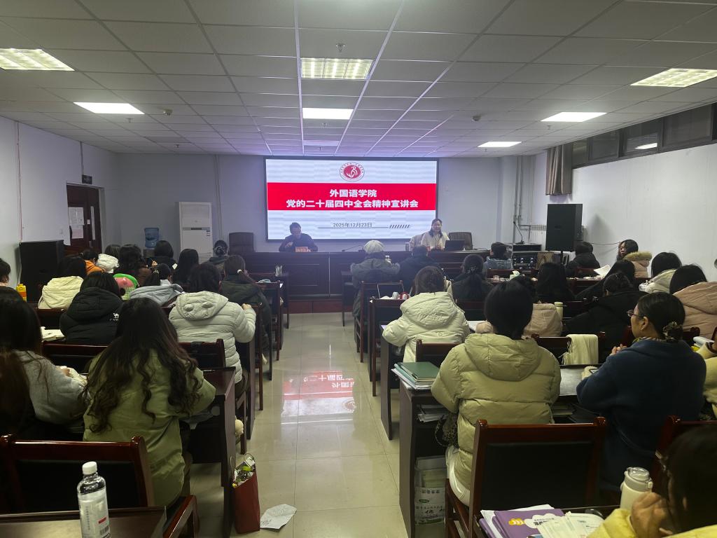 党委书记汤中生作总结讲话并提出三点要求:一要提高政治站位,将思想和行动统一到党中央决策部署上来;二要坚持学用结合,将全会精神融入学院“十五五”规划编制与学科建设、人才培养、科研创新等工作;三要树牢危机意识,主动应对文科式微与人工智能挑战,推动“外语+”交叉创新,培养服务国家战略的复合型人才,为谱写学院事业发展新篇章贡献力量。